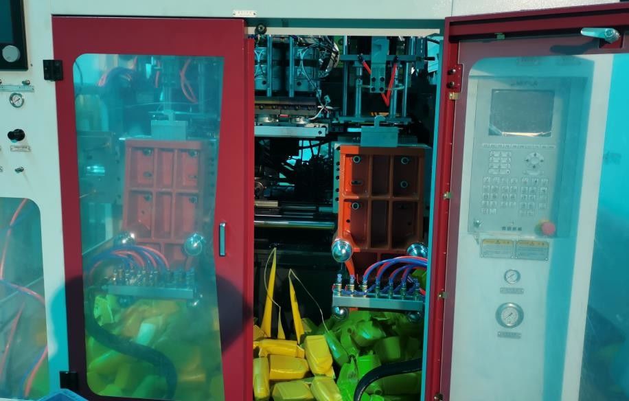 زجاجة تشحيم HDPE ثلاثية الطبقات مع خط عرض شريطي ، آلة نفخ القوالب MP70D-2
